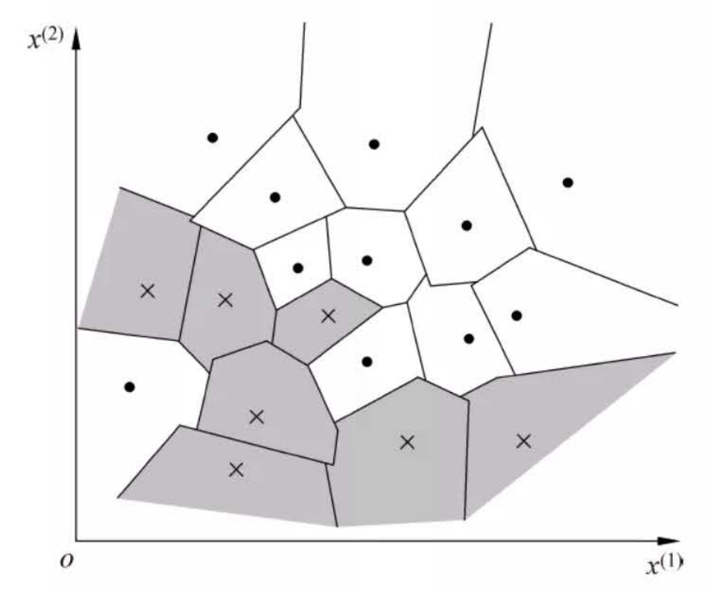 图1:k近邻法的模型对应特征空间的一个划分