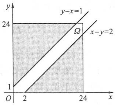 如上图所示,记 \(x\) 和 \(y\) 分别为甲乙两艘轮船到达码头的时间。